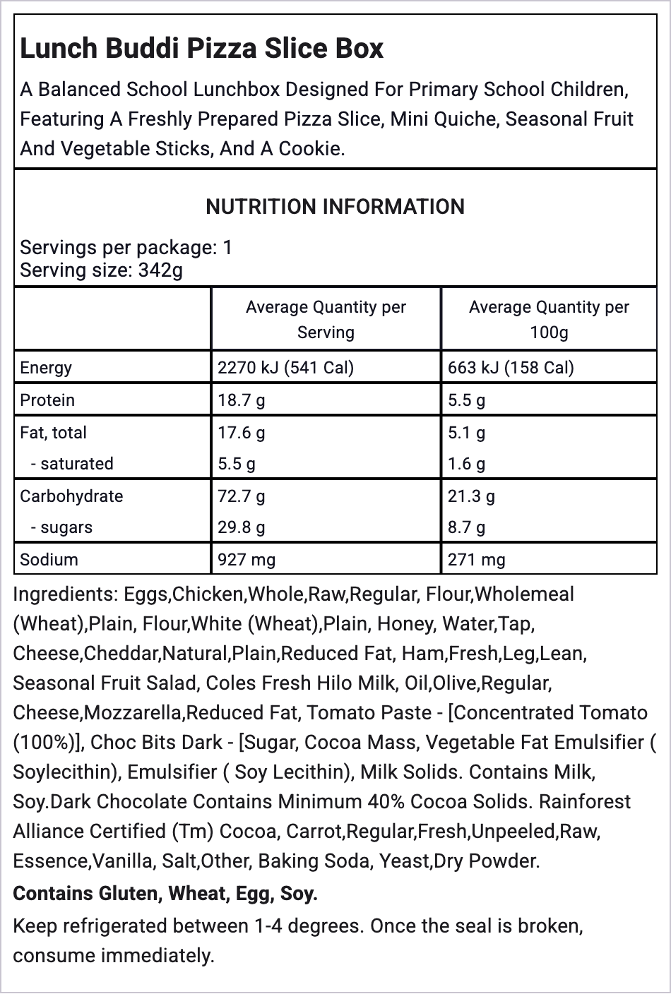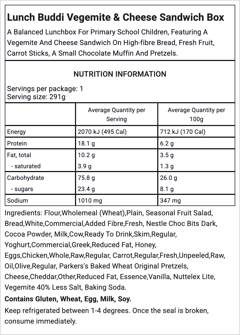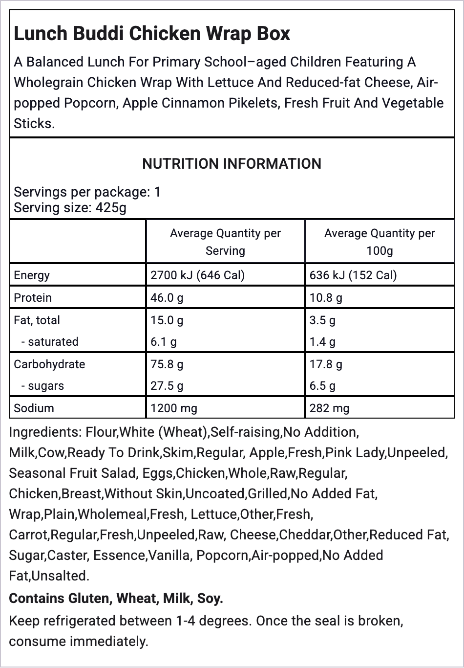 All Lunch Buddis are made with the freshest, seasonal ingredients. See a full breakdown of the ingredients and nutritional values in each pack below.